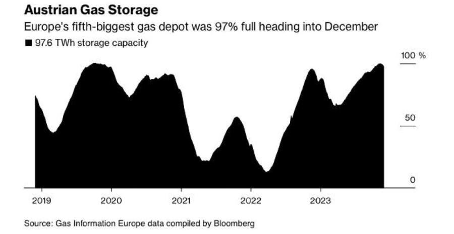 Газохранилища Австрии заполнены российским газом на 100%. Это позволяет ей увеличивать продажи своим соседям, одновременно препятствуя усилиям по отказу от российского энергетического влияния. Переполненные хранилища и беспрепятственные поставки показывают, что рынок чувствует себя более комфортно, чем после начала военного конфликта на Украине.