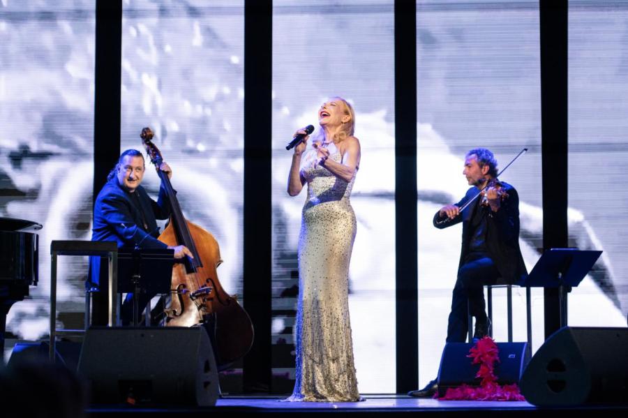 После того как Инесе Галанте поприветствовала публику на трех языках — латышском, английском и немецком — к роялю вышел многократный участник Сан–Ремо, звезда "Евровидения", знаменитый итальянский пианист, которому подвластно все — и классика, и джаз, и диско, и рок, и поп, — Рафаэль Гвалацци со своим оркестром.