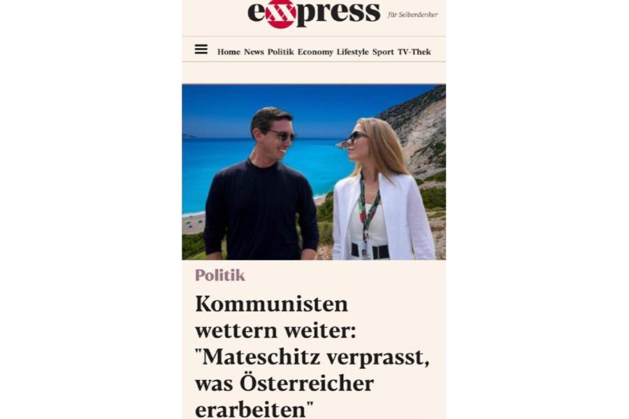 «Дебаты, начатые Социал-демократической партией по поводу роскошного путешествия наследницы Swarovski Виктории Сваровски и наследника Red Bull Марка Матешица, продолжают обостряться после того, как Компартия заявила о желании экспроприировать их. В компании друзей Матешиц и Сваровски отправились в Грецию на частном самолете, где отмечали 30-летие девушки на суперяхте за 7 миллионов евро.
