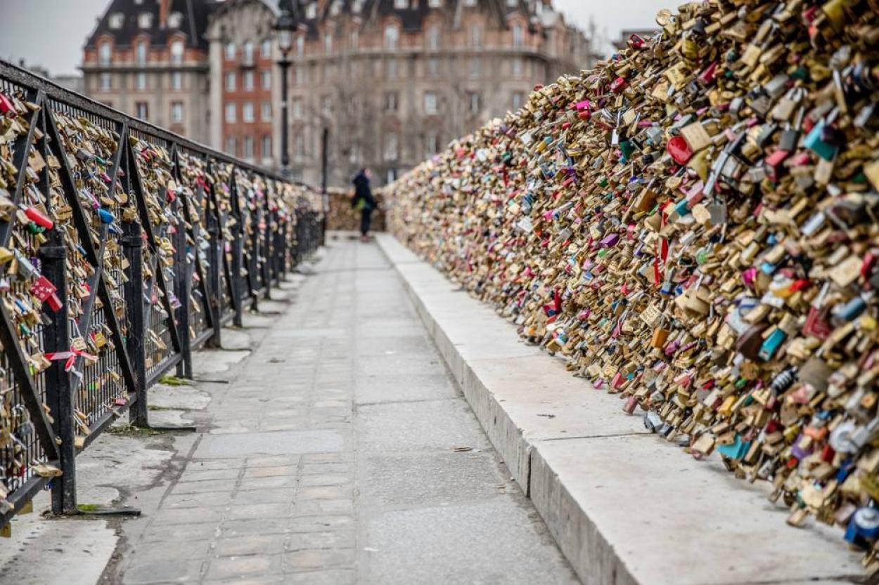 Навесные замки, символизирующие прочные узы и любовь, прикрепляемые туристами, представляют опасность конструкции моста Искусств в Париже.