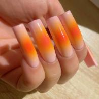 На днях известный мастер по маникюру Бритни Бойс поддержала необычный тренд, показала яркий маникюр с аурой своей клиентки, актрисы и модели Меган Фокс. Квадратная форма и экстремальная длина ногтей была подчеркнута пудрово-фиолетовым оттенком лака, а «аура» — розовым и оранжевым. Чтобы придать лоска ногтям, Бойс покрыла ногти глянцевым слоем топа. Интересно, о чем говорит аура Фокс?