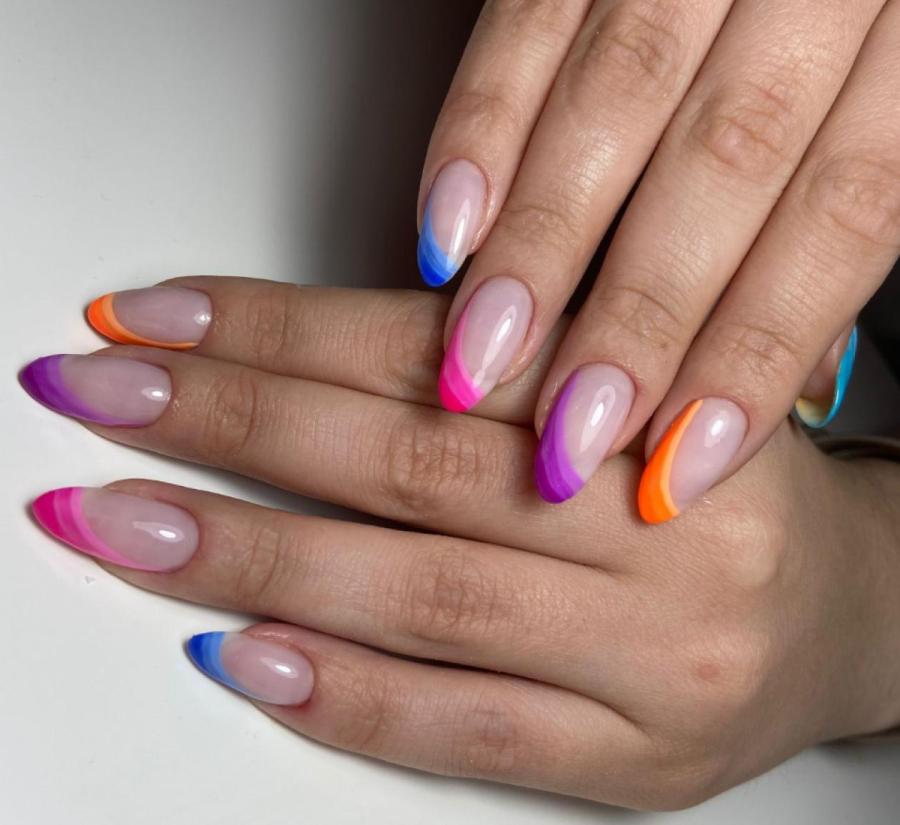 Хотите поднять себе настроение? Тогда обратите внимание на идею с разноцветными кончиками ногтей. Осенью 2022 года такой дизайн непременно будет красоваться на ноготках многих модниц. Эксперты предлагают использовать матовый финиш в сочетании с веселыми летними цветами. К слову, тренд уже перекочевал из летнего сезона в наступающую осеннюю пору, чтобы напоминать о самом лучшем времени года.