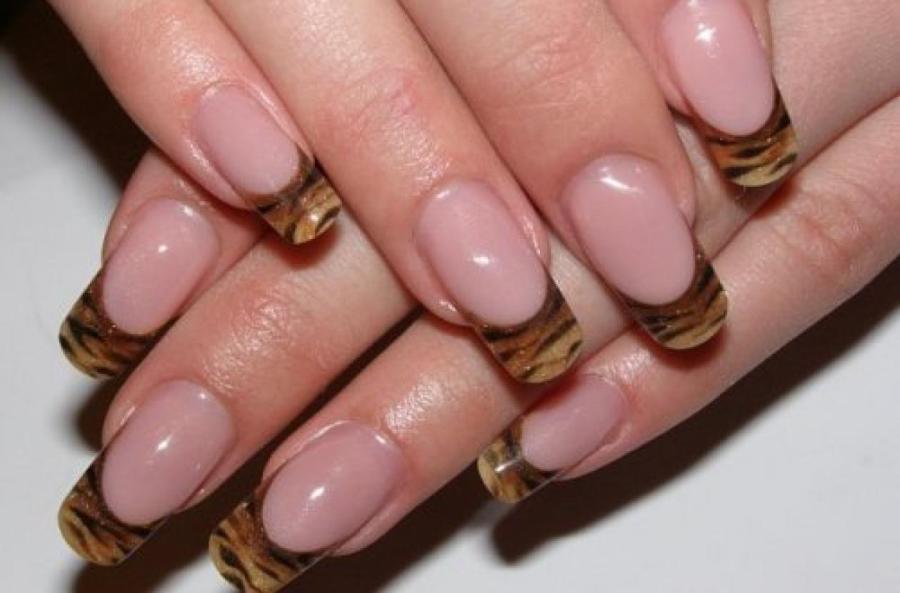 Специалисты нейл-арта предлагают модницам новый тренд − леопардовый принт, который отлично сочетается с классикой. Хищный рисунок в дуэте с французским маникюром дает по-настоящему роскошный эффект. Он может быть выполнен как в матовых тонах, так и в насыщенных ярких расцветках. Здесь все зависит от личных предпочтений.