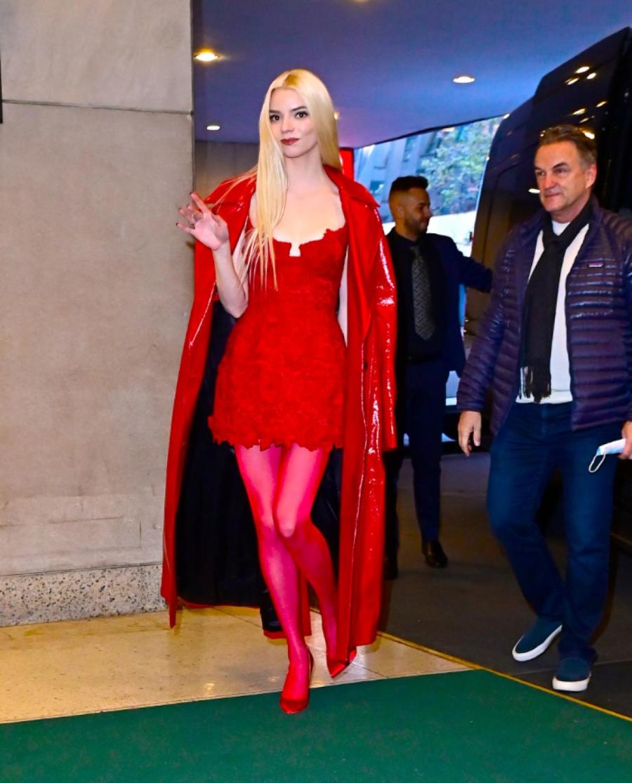 Вот уже несколько дней подряд актриса Аня Тейлор-Джой, известная по фильмам "Ведьма" и "Варяг", пиарит свой новый фильм "Меню" и делает это с шиком.