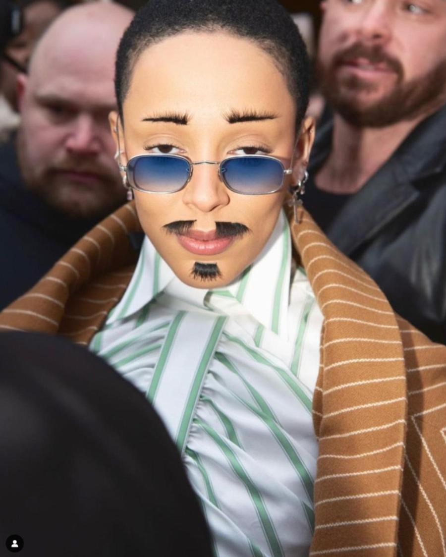 27-летняя американская рэперша и певица Амала Ратна Зандиле Дламини, более известная как Doja Cat, похоже, становится главной звездой парижской Недели моды. Не успели фотографы прийти в себя после ее появления в красном цвете и с 30 тысячами стразов на теле, как она снова ошеломила публику. В этот раз артистка на показе Viktor & Rolf's предстала о новом и необычном образе.
