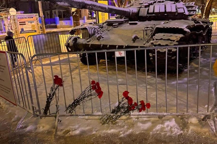 Как сообщал bb.lv, Риге 24 февраля перед посольством РФ был поставлен подбитый в Украине российский танк.