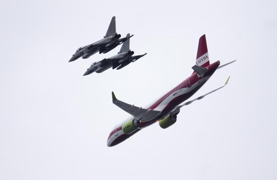 Над Ригой пролетели 16 самолетов, включая четыре истребителя НАТО, которые сопроводили гражданский самолет госавиакомпании airBaltic.