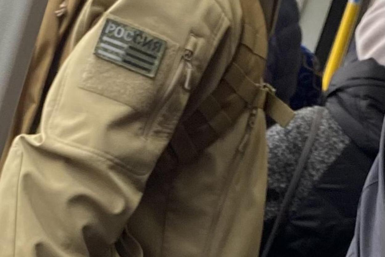 В социальных сетях сотрудники полиции опубликовали фото из общественного транспорта, на котором изображен мужчина в куртке с шевроном «Россия».