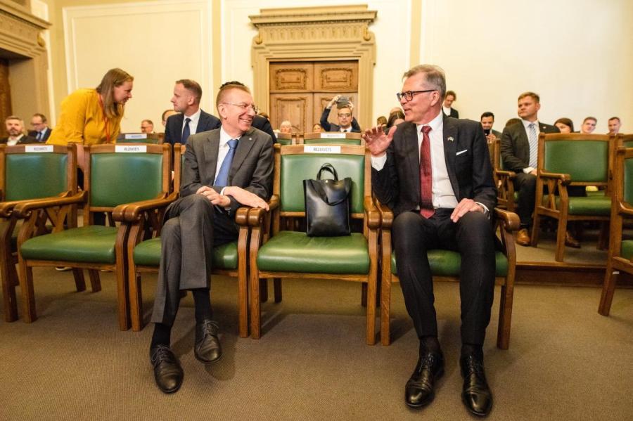 — Одновременно, — подчеркнул А. Латковскис, — нисколько не малозначим факт, что наш кандидат на должность президента государства знает лично лидеров других государств и политических игроков. Эдгарс Ринкевичс, руководя Министерством иностранных дел, заложил широчайшую базу контактов, которая вообще была бы мыслима. Это очень способствовало бы работе, если бы сейм сегодня его утвердил в должности…
