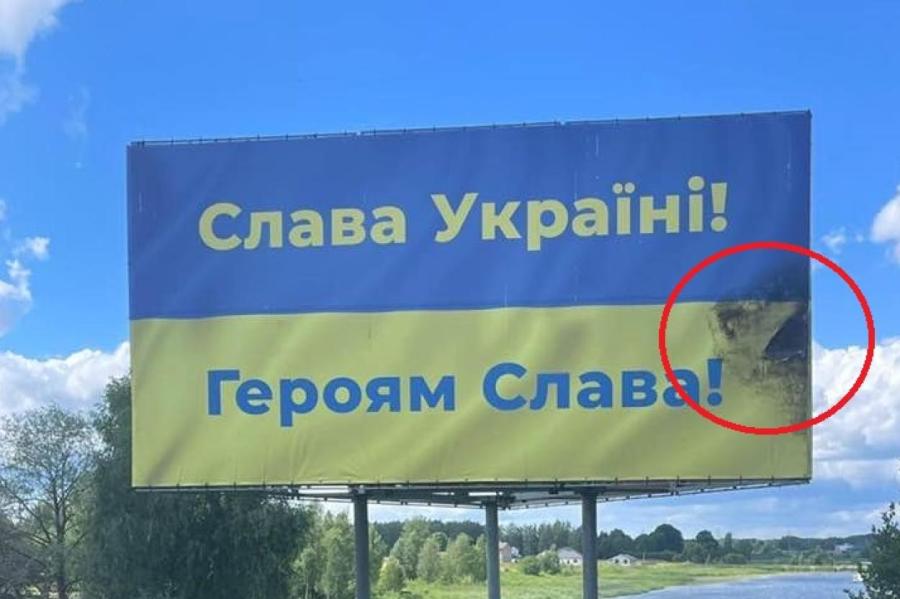 Мэр Огре и видный деятель "ТБ-Visu Latvijai" Эгилс Хелманис отреагировал на попытку поджечь плакат на въезде в город "Слава Украине. Героям слава!".