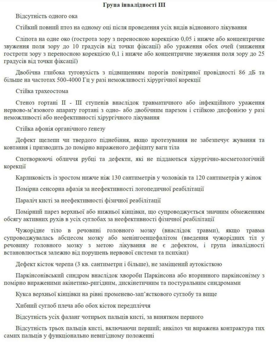 Полный список заболеваний, по которым человеку присваивается третья группа, на скринах (постановления Кабмина №10 от 2015 года). И вот отдельные заболевания оттуда: