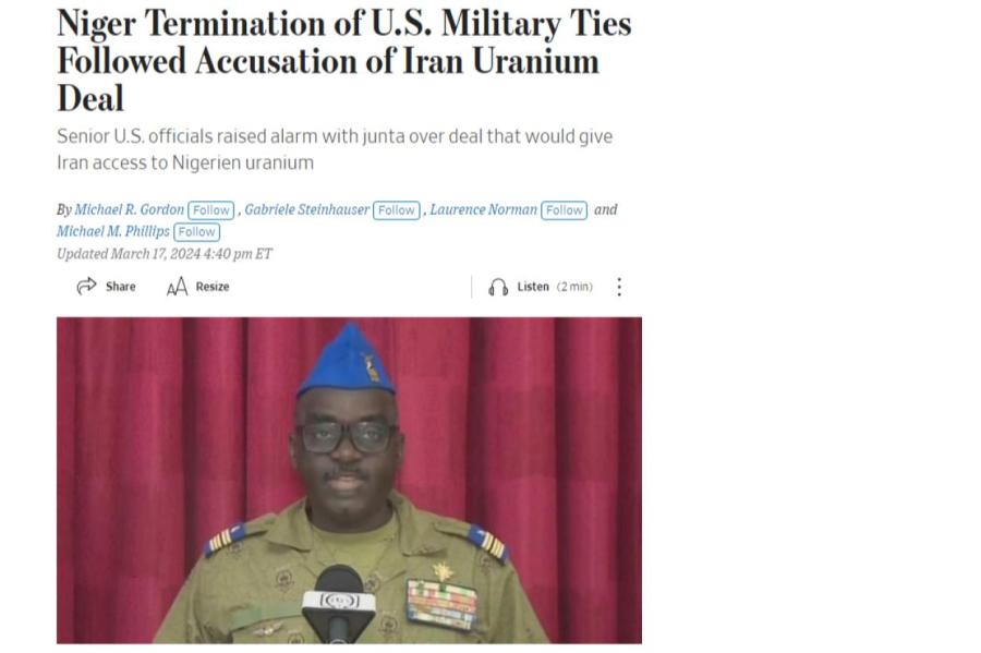 Решение Нигера расторгнуть военные соглашения с США было принято после того, как высокопоставленные американские чиновники обвинили власти африканской страны в тайном изучении сделки по предоставлению Ирану доступа к своим урановым запасам — раскрыл подоплеку The Wall Street Journal.