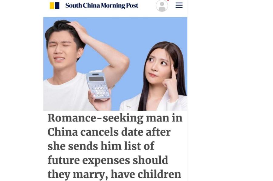 «35-летний состоятельный китаец из провинции Чжэцзян обратился в брачное агентство, где ему подыскали потенциальную жену. На первом свидании мужчина думал, что встретил «ту самую», однако вечером его ждал сюрприз: женщина прислала ему документ, который назвала «Список обычных ежедневных расходов семьи».