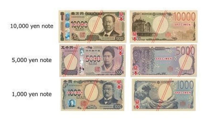 Банкнота номиналом 5000 иен (стоимостью 28,71 евро) посвящена феминистке и основательнице колледжа Умэко Цуда. На банкноте достоинством 1000 иен (стоимостью 5,74 евро) изображен врач и бактериолог Сибасабуро Китасато, имевший большие заслуги в изучении столбняка и бубонной чумы.